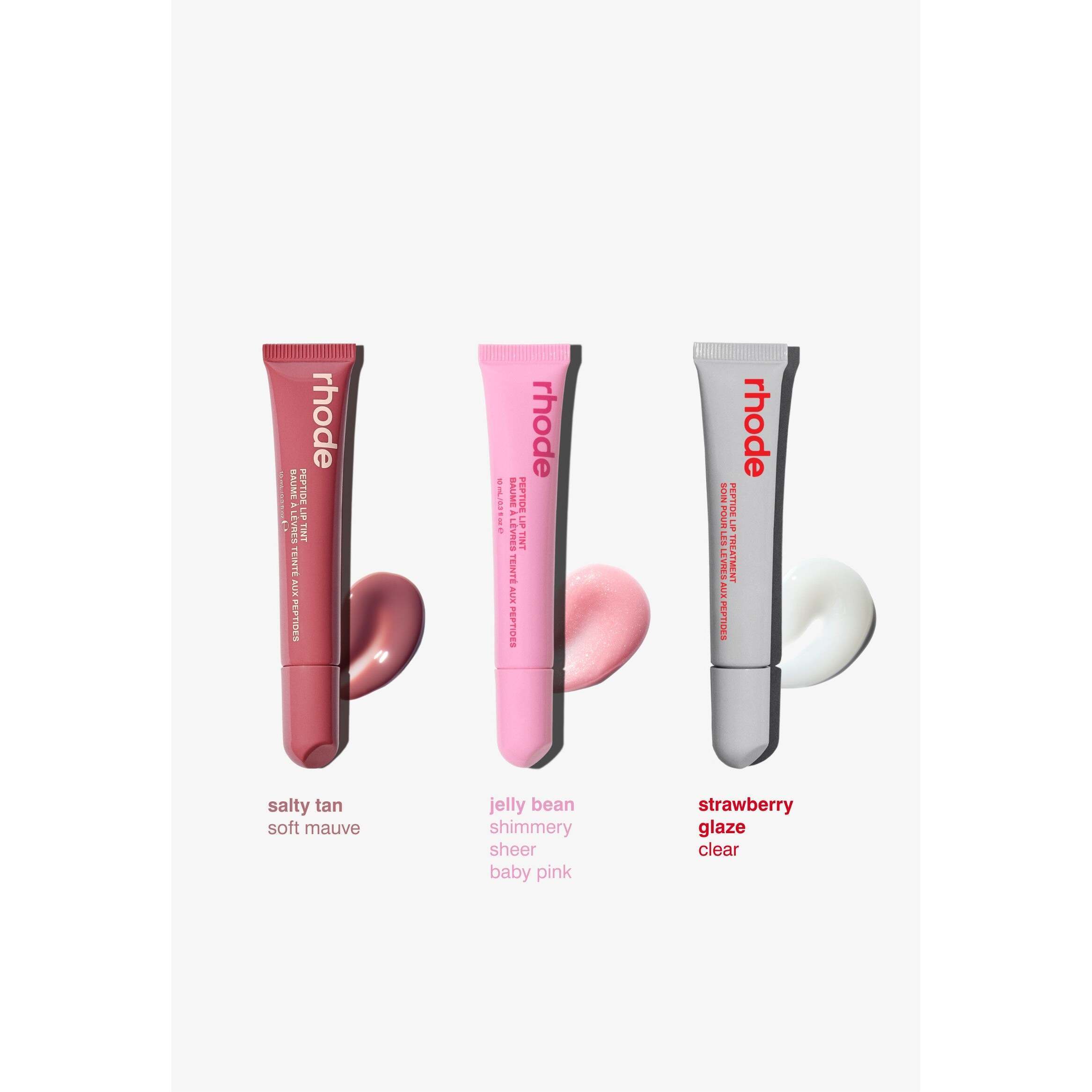 Includes 3 Products: Peptide Lip Treatment In Strawberry Glaze, Peptide Lip Tint In Jelly Bean, And Peptide Lip Tint In Salty Tan